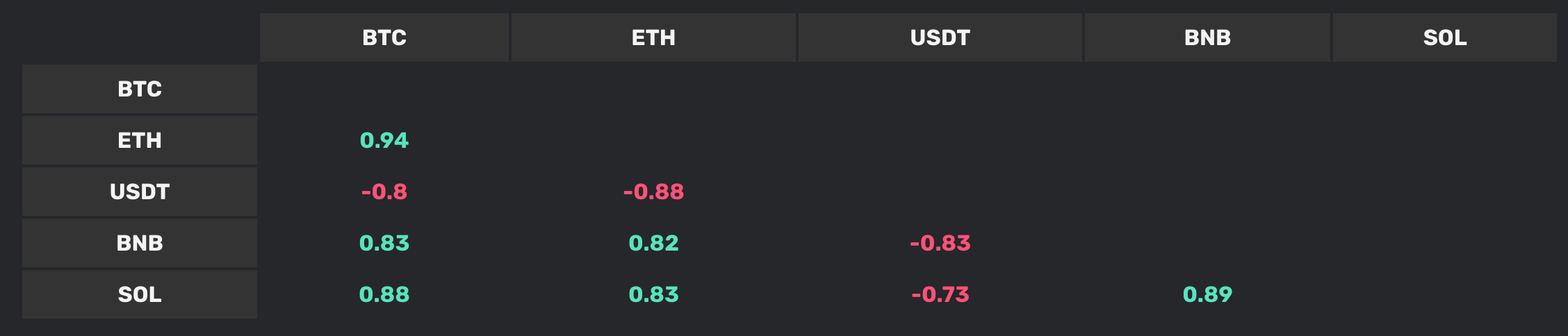 Correlation between BTC & ETH and BTC & USDT