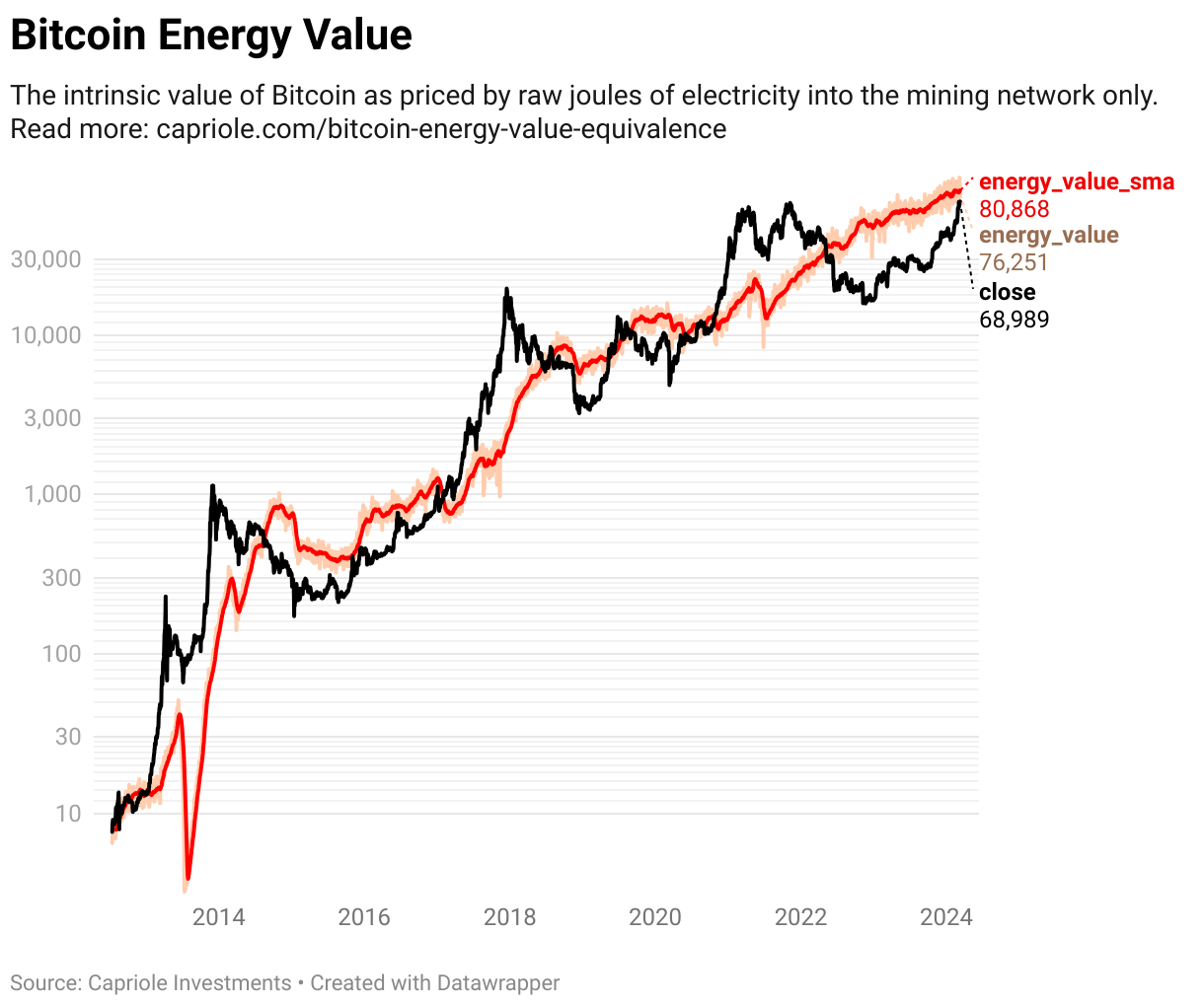Capriole Investment sets BTC current energy value at US$81,284