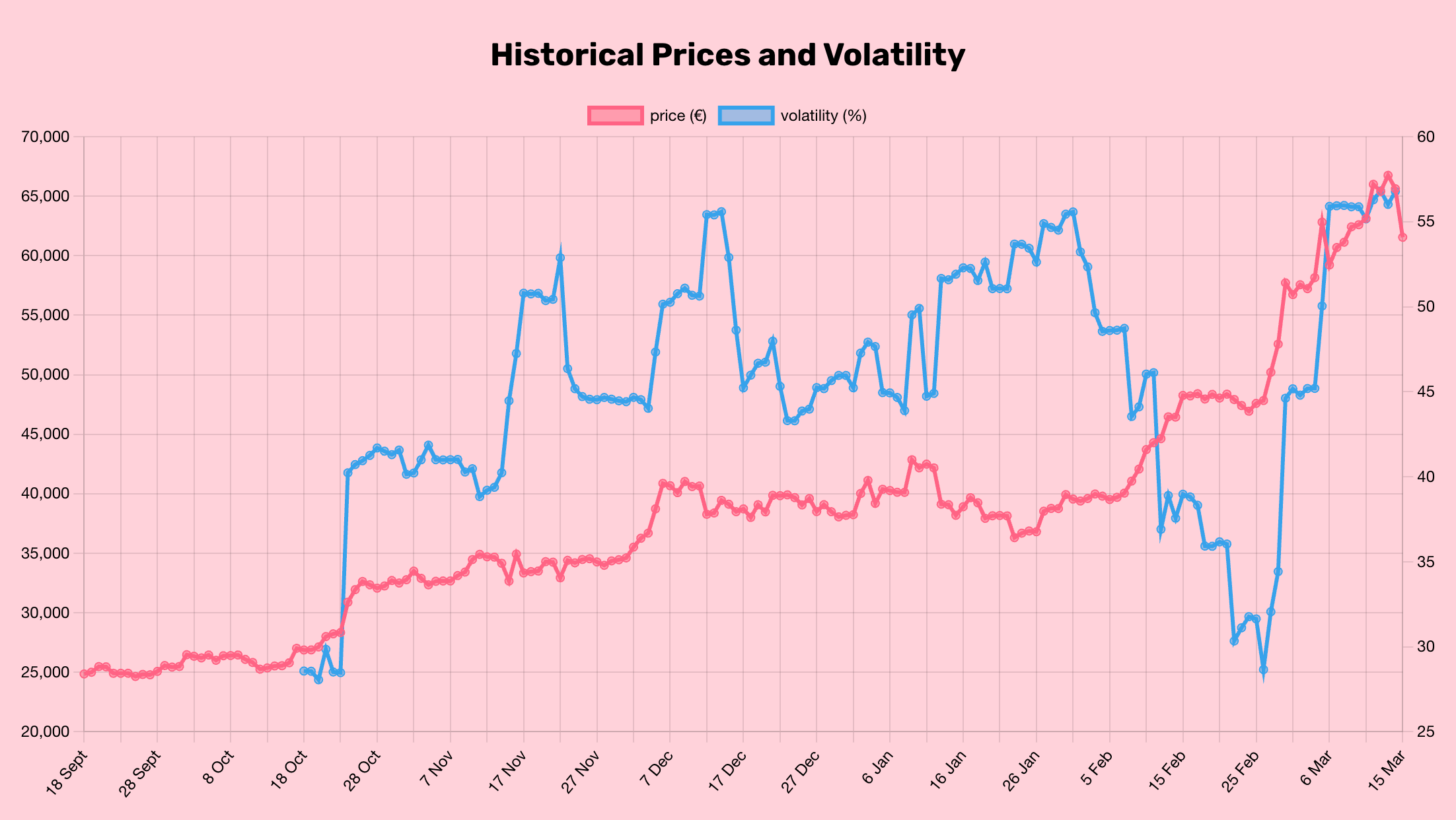 BTC price (EUR) and volatility